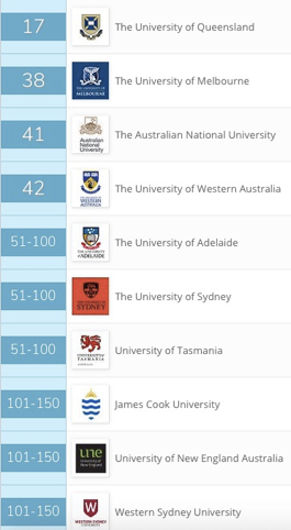 附1:QS2019澳洲农学与林学专业院校世界排名