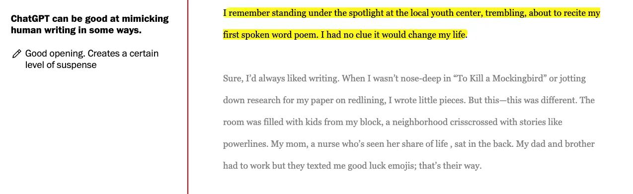 点评一: ChatGPT 在某些方面擅长模仿人类书写:开头好,创造一定程度的悬念。