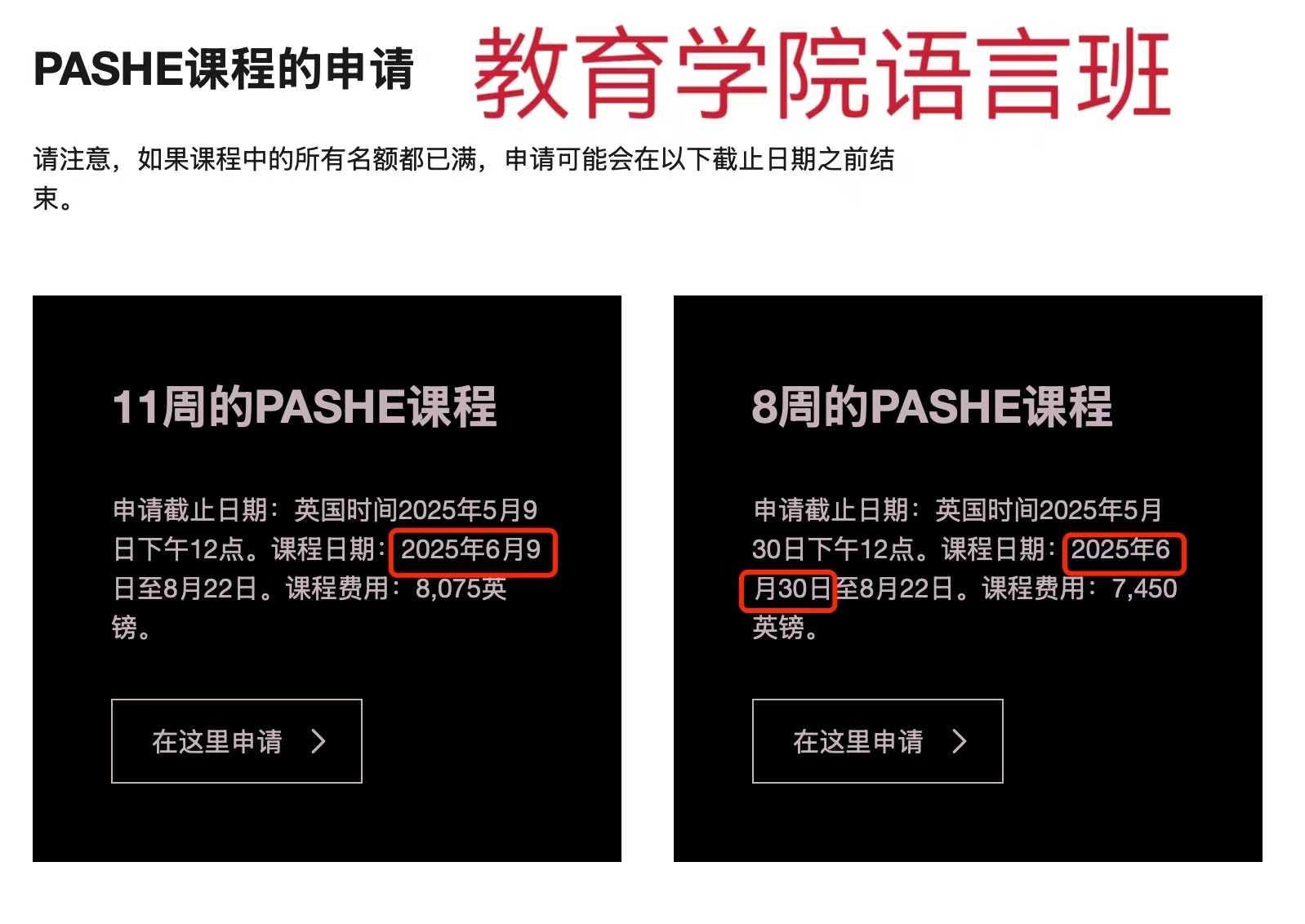 加长语言班:为期 11周, 2025年 6月 9号;有线上和线下课程。(见下图)