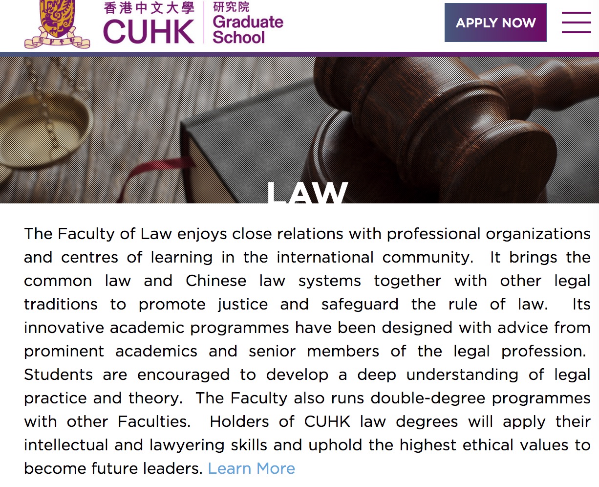 法学专业在申请上有一定的限制,从申请人的角度来看,要么是本专业申请,要么需要具备相关行业经验;从学校的角度来看,法学专业的设置需要具备极强的应用性。因此,在香港的八所大学中,只有 香港大学、香港中文大学和香港城市大学 这三所学校开设法学专业,申请要求也相对较高。