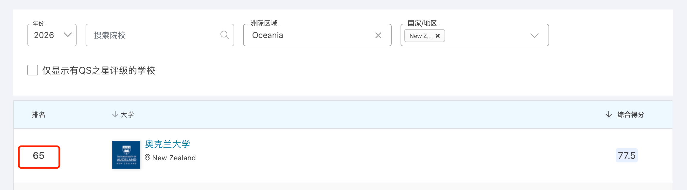 奥克兰大学作为新西兰唯一进入 QS 世界百强的高校(2026 年 QS 排名第 65 位),其学历在全球范围内认可度极高。对回国发展的学生而言,世界前百名校背景在就业市场中自带竞争力,尤其在金融、科技、教育等行业,能快速通过简历初筛;对计划留在当地的学生,奥克兰大学的移民专业学历是新西兰技术移民打分体系中的 “加分项”,配合本地学习时长和工作经验,移民申请更具优势。