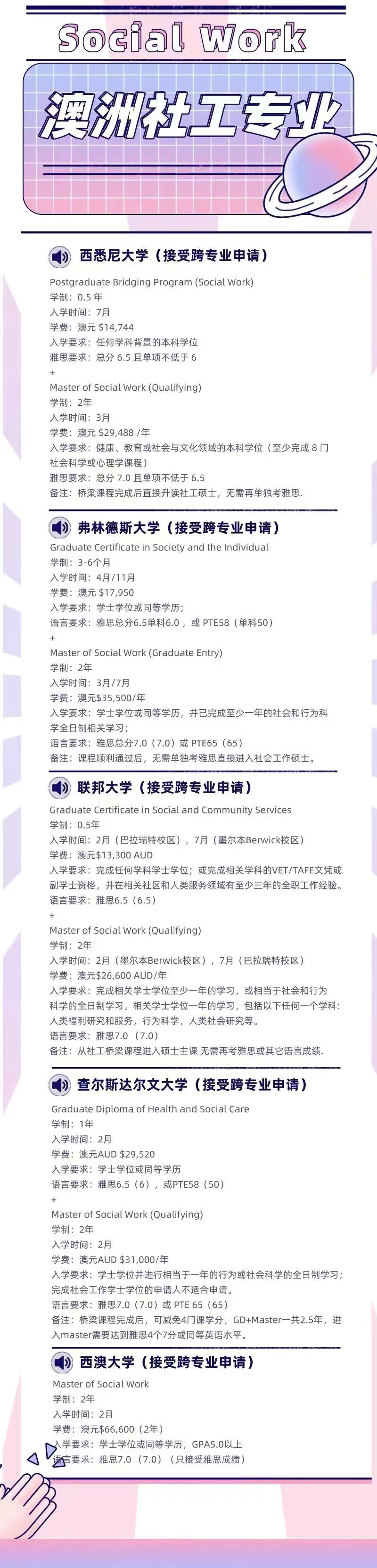 最新:澳洲社工专业汇总(接受跨专业申请)