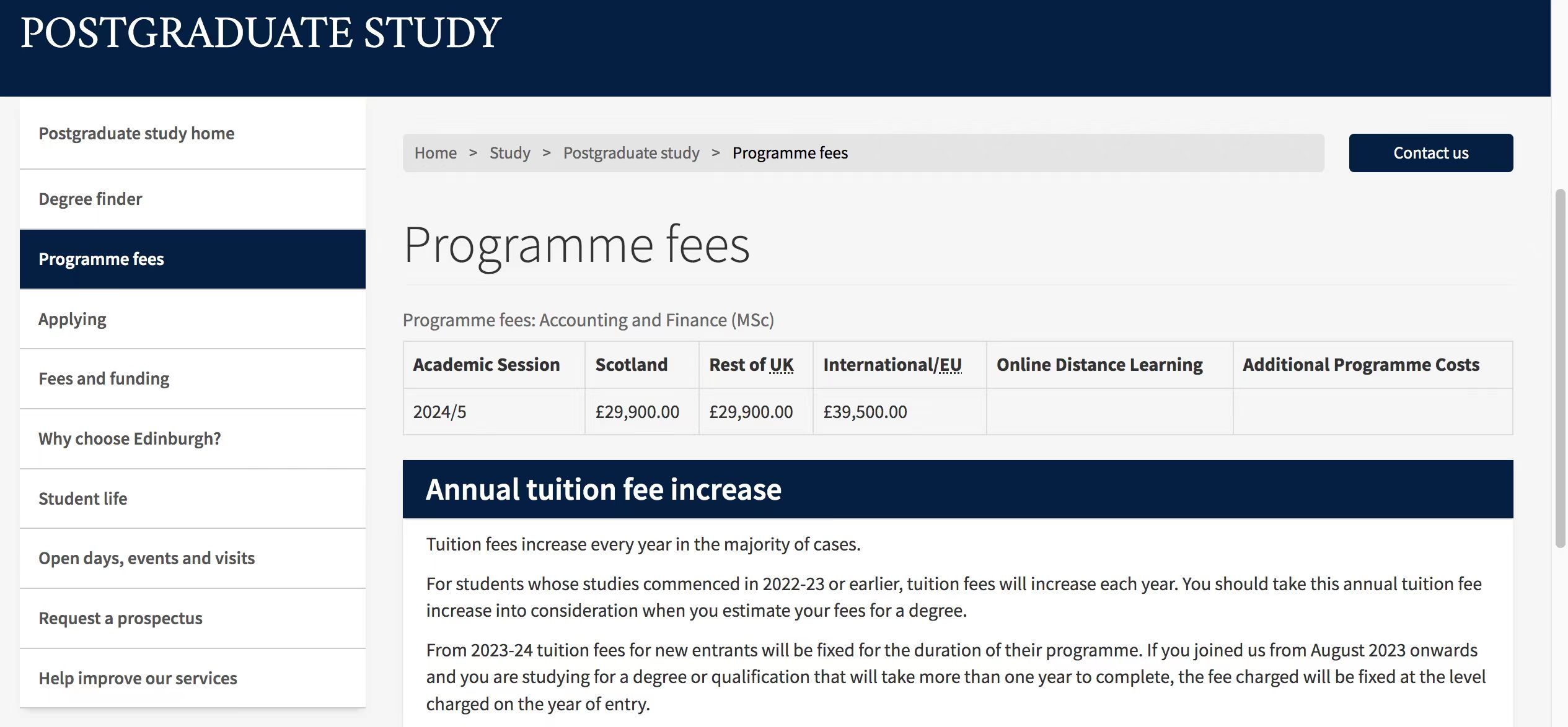 24fall 国际学生学费: 33,450 英镑