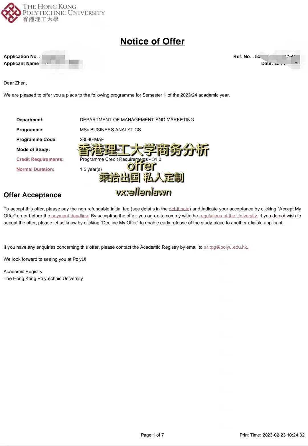 非211高同学成功获得香港理工大学offer