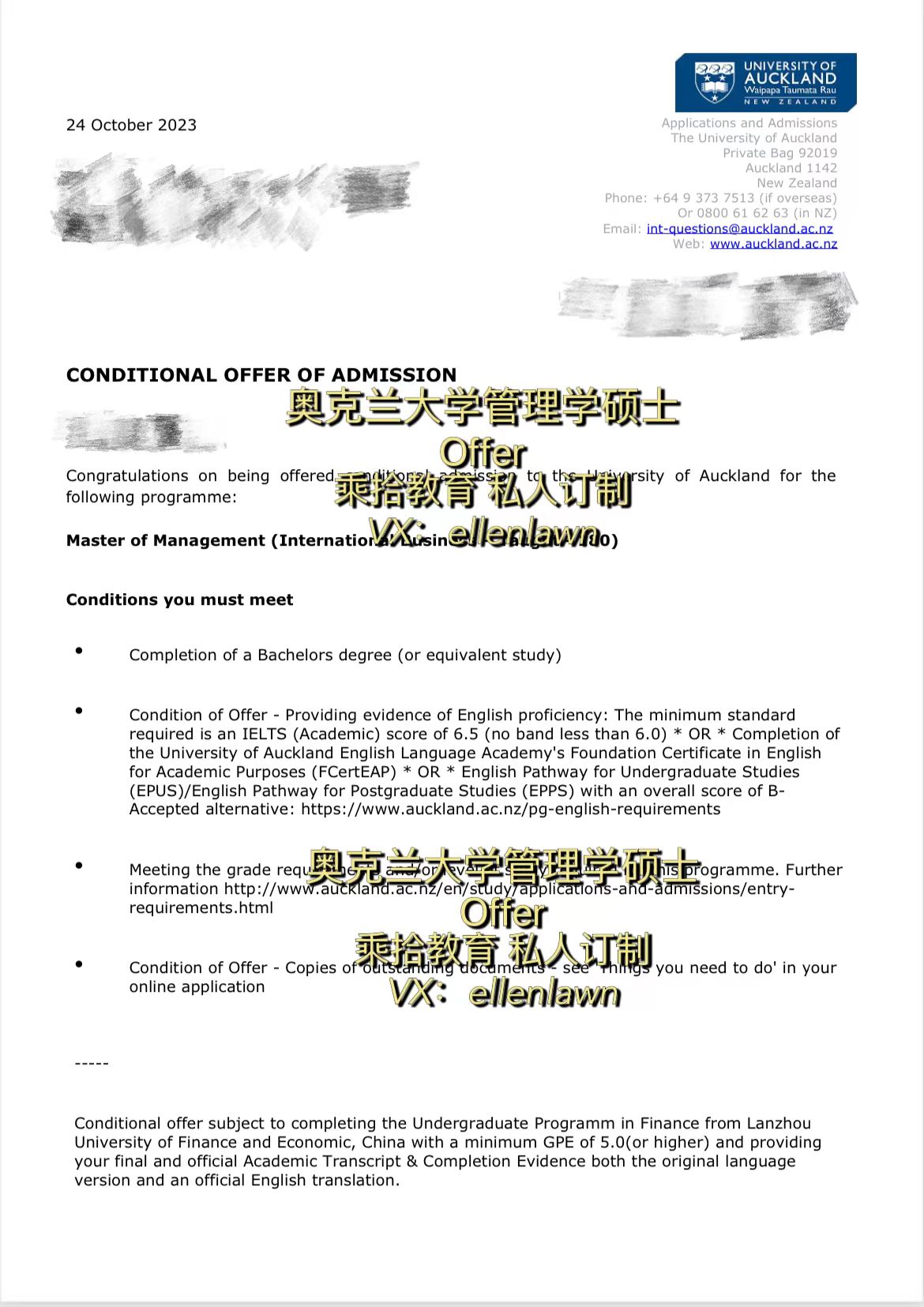 李同学斩获奥克兰大学管理学硕士offer!