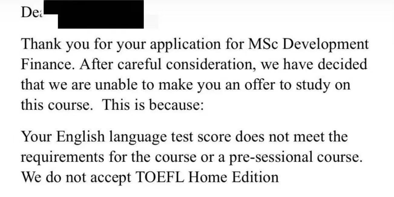 如何規避: 英國大多數專業都可以 con offer(有條件録取 ),可以先拿 con offer再讀語言班。