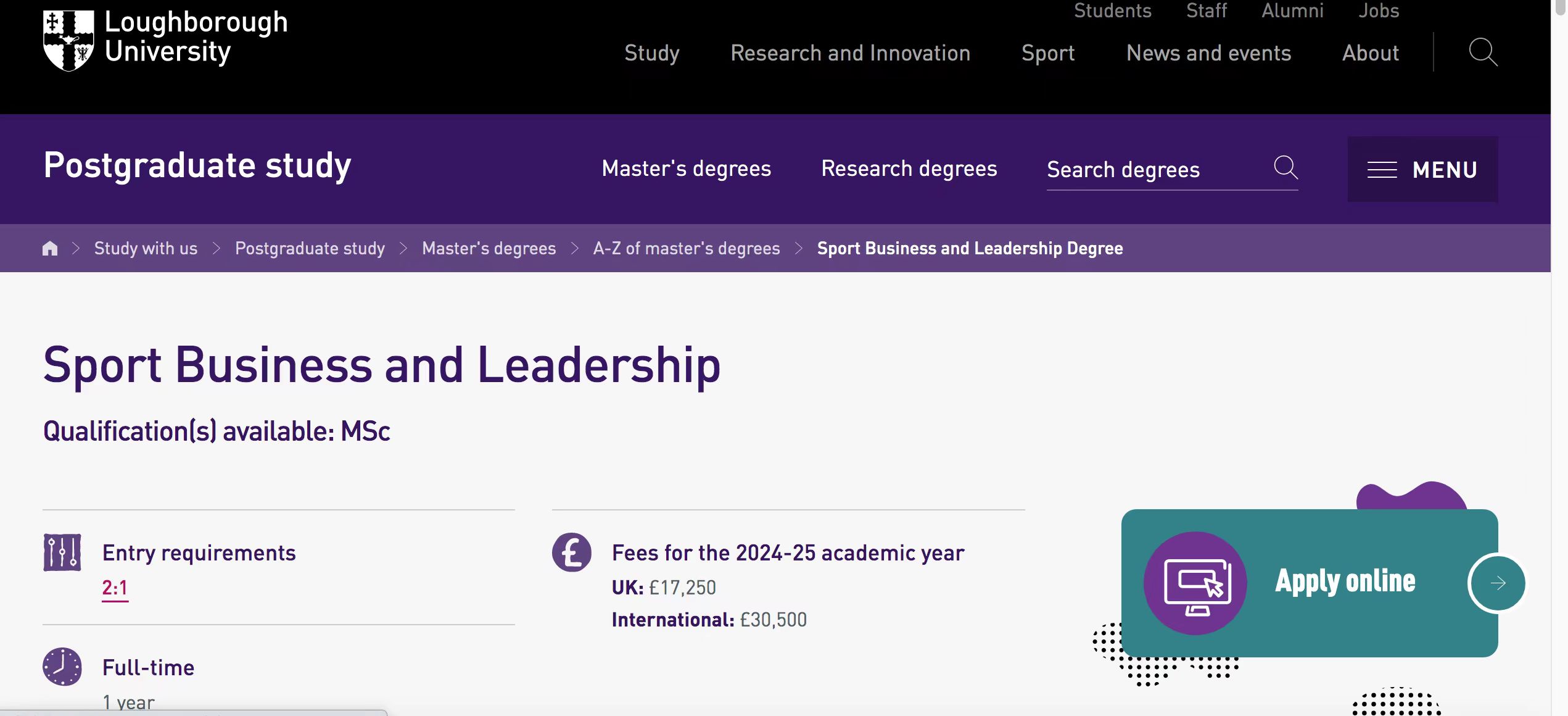 体育管理硕士 MSc Sport Management