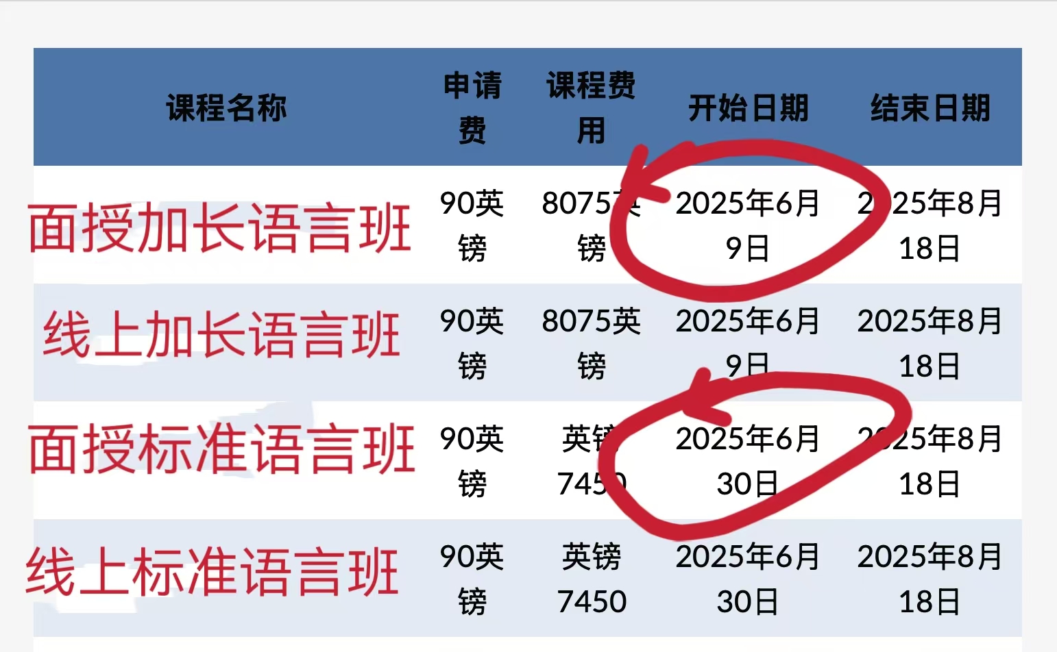 加长语言班:为期 11周, 2025年 6月 9号;有线上和线下课程。(见下图)