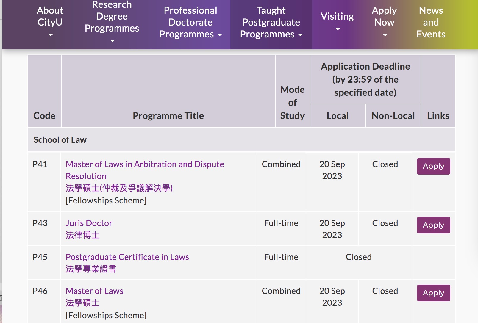 香港法律专业开设: