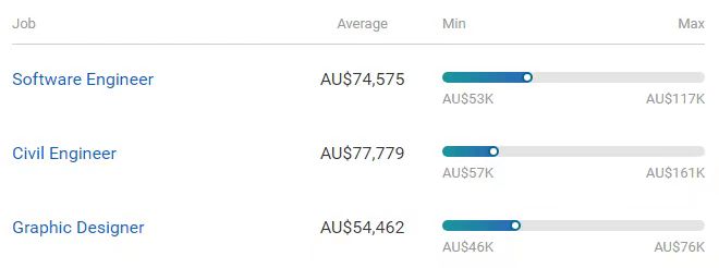 关于澳洲热门学科,乘拾教育小编为大家拿出货真价实的数据,为此专门去澳洲 Pay scale 上搜集到了一些权威数据。下面就分享给大家。