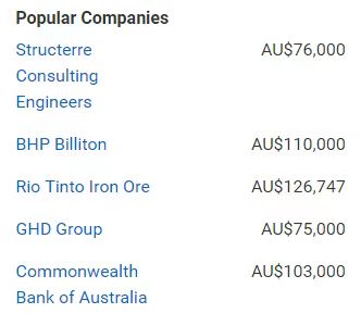 雇主公司 :澳大利亚国家银行 NAB ;澳新银行 ANZ ;安永会计师事务所; Telstra ; IBM ;