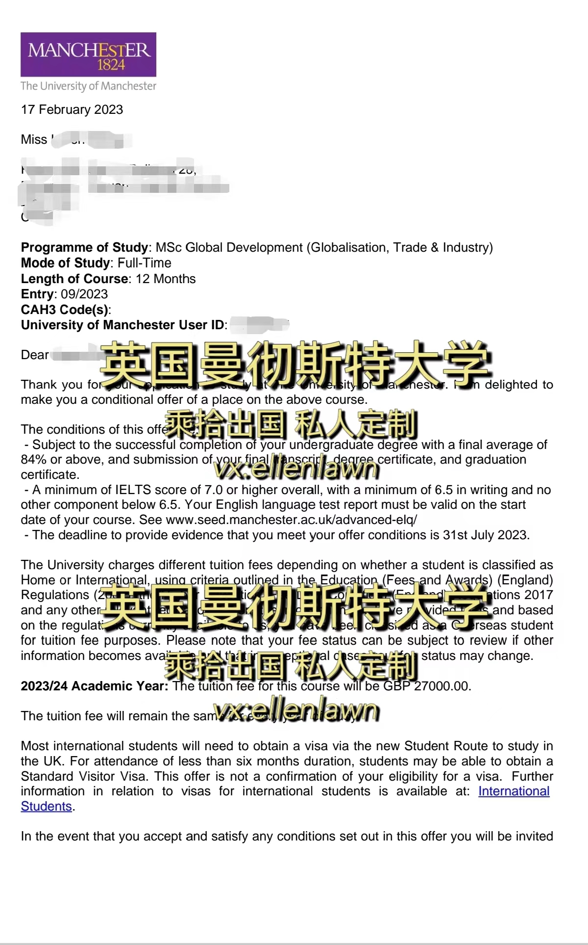张同学本科非211成功申请英国曼彻斯特大学offer