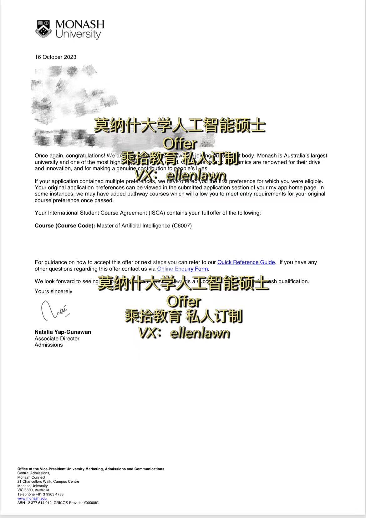 录取学校:莫纳什大学
