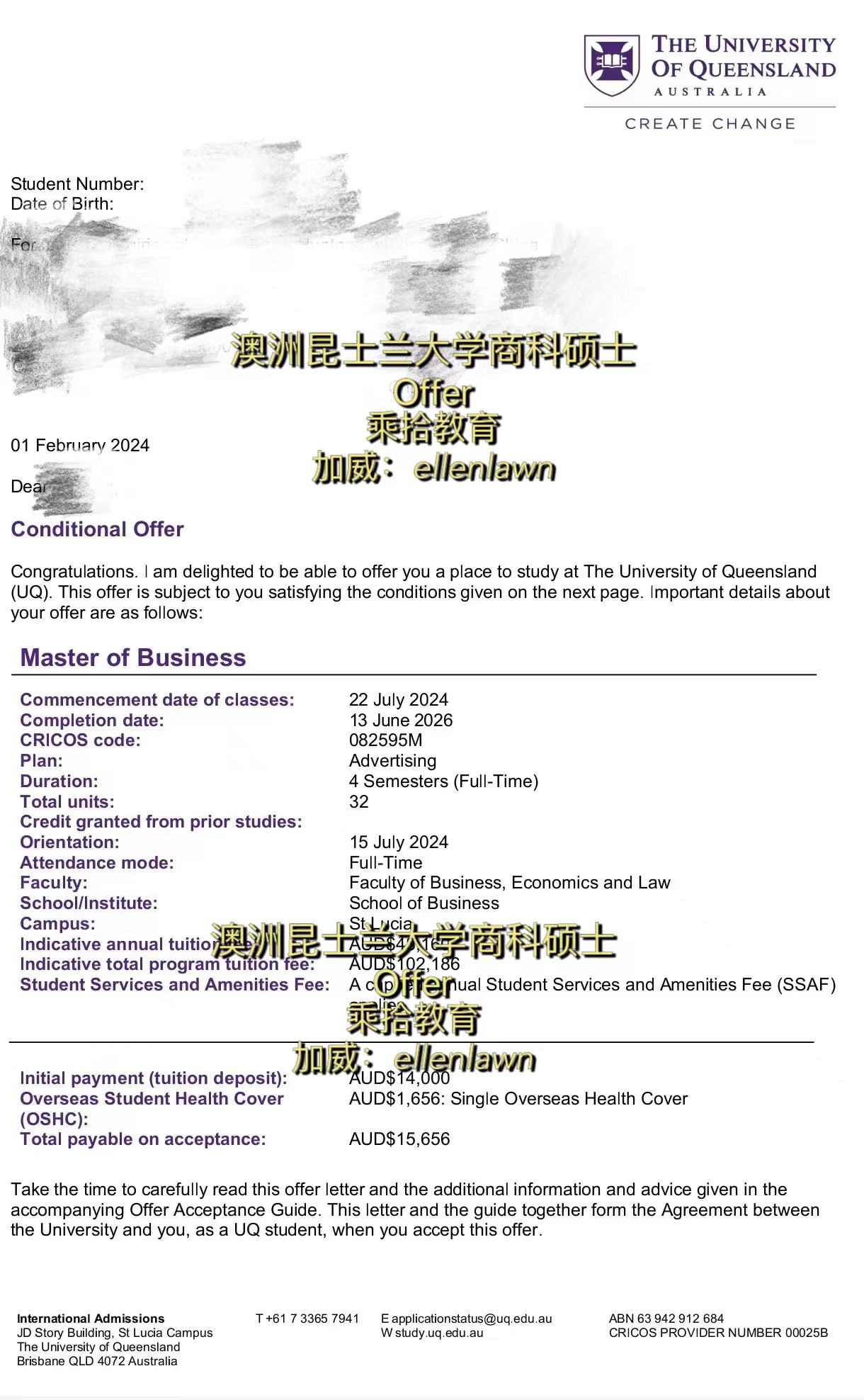 王同学斩获澳洲昆士兰大学商科硕士offer!