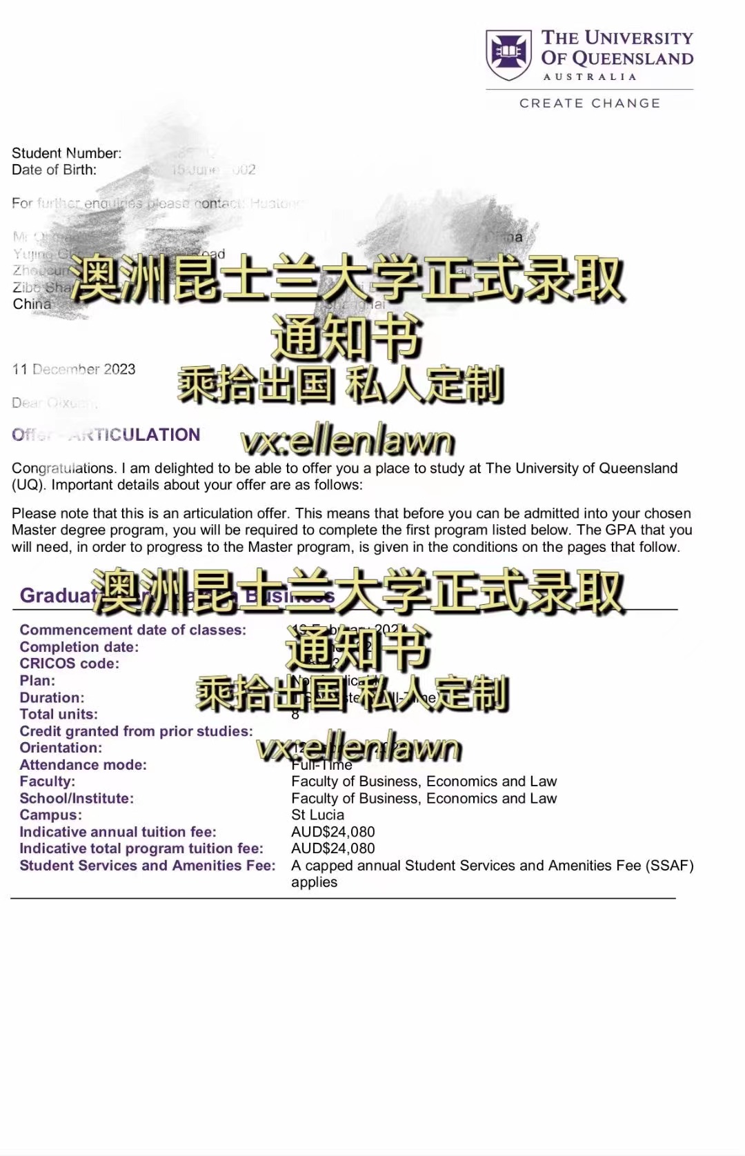 高同学斩获昆士兰大学商业,经济与法律硕士offer!