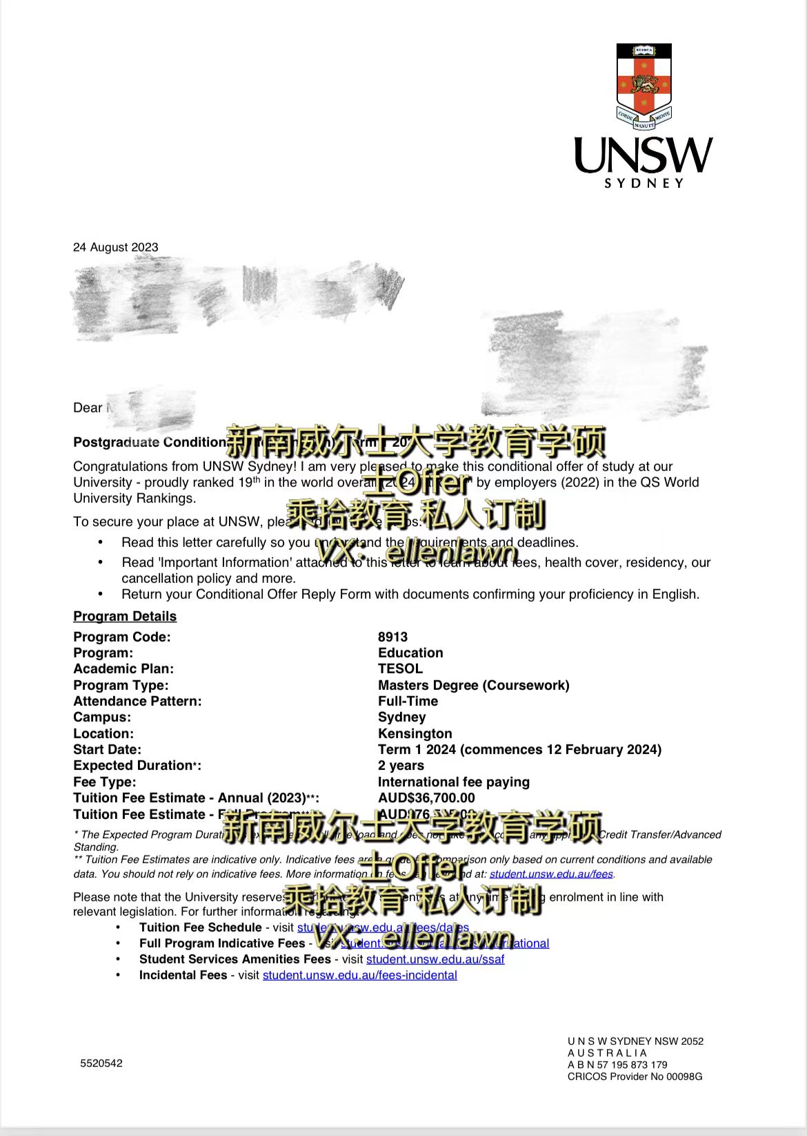录取学校:新南威尔士大学