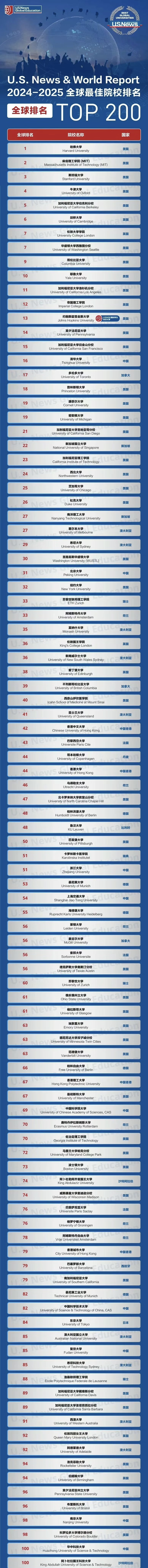 2024 年 6月 25日, U.S. News & World Report髮佈瞭 2024-2025年度全球最佳院校排名。