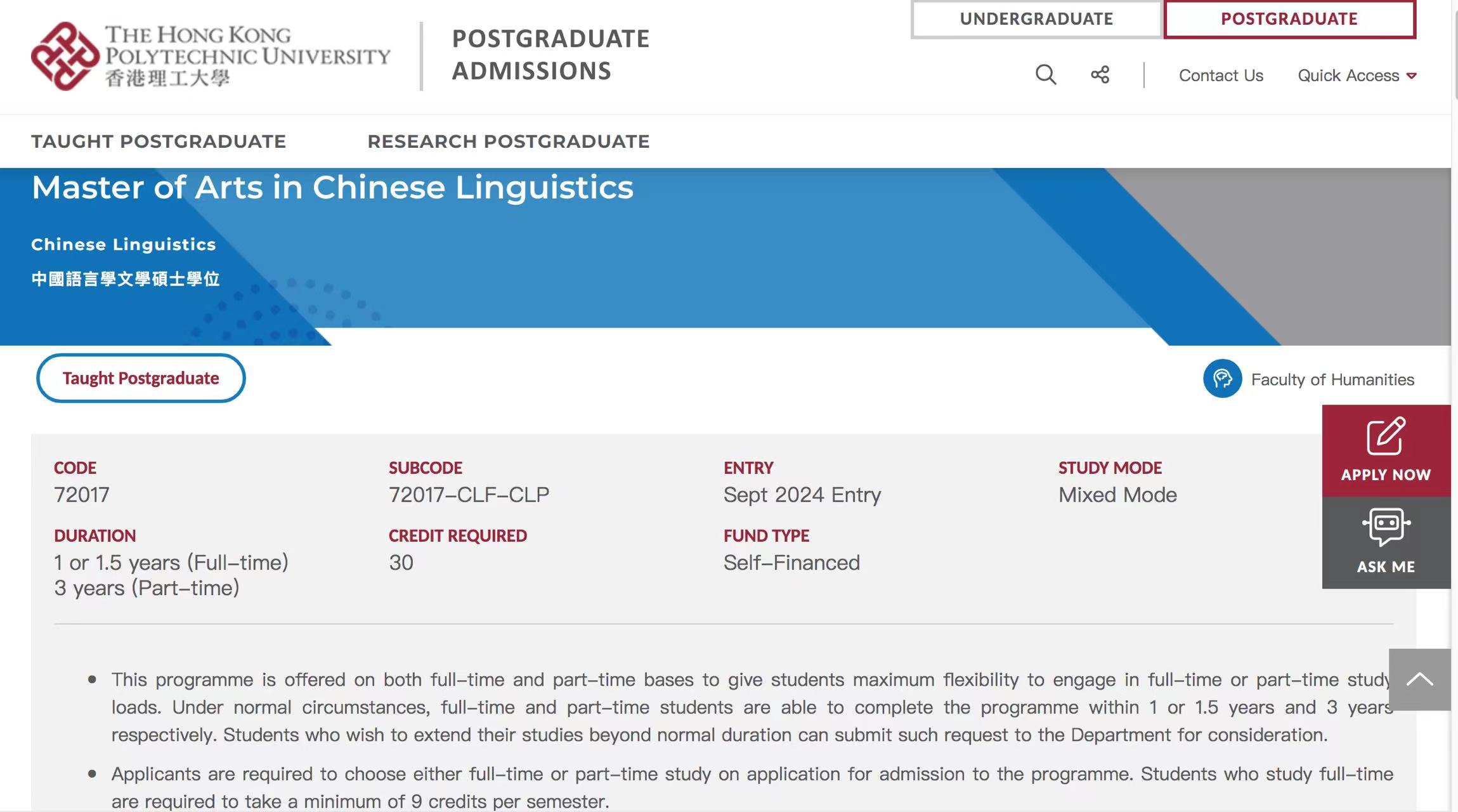 入學要求 : 本科學位,普通話二乙;