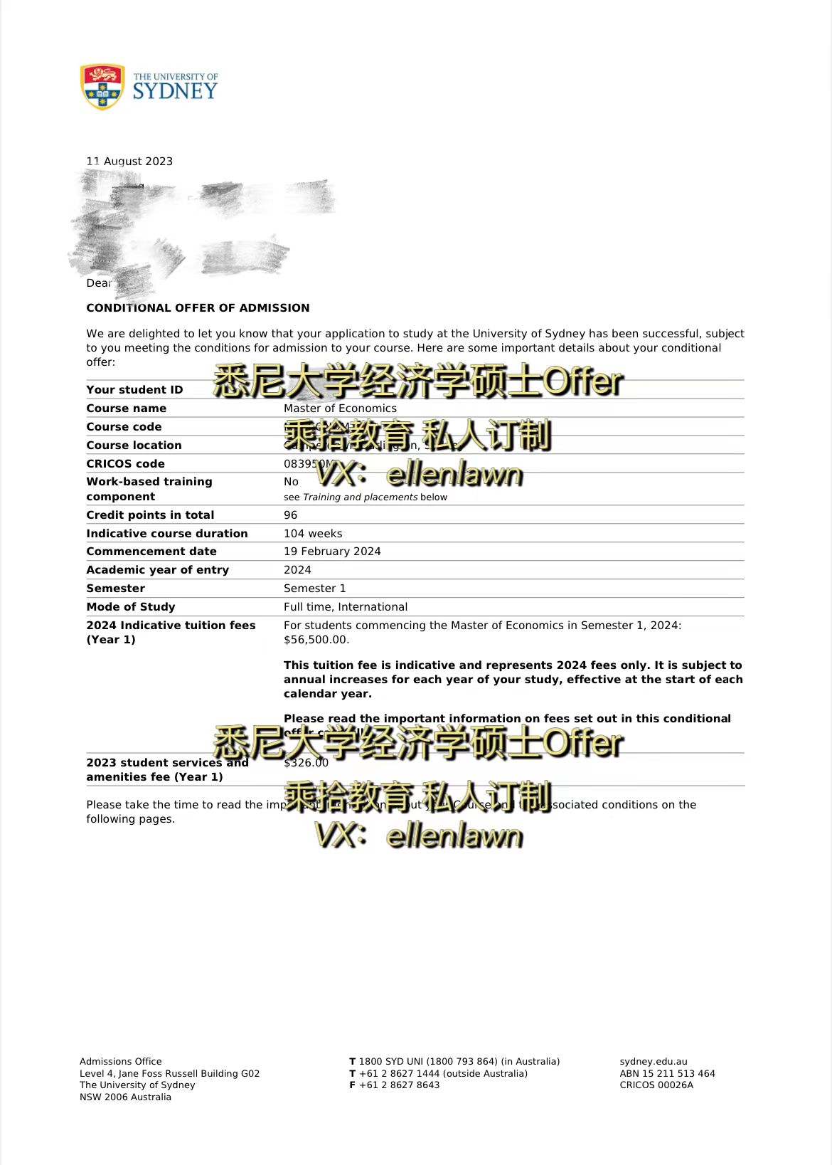 澳洲悉尼大學onshore王衕學成功穫得悉尼大學經濟學碩士offer